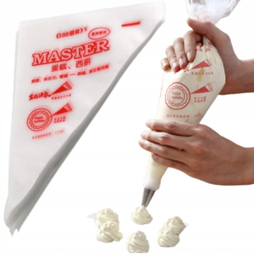 W opakowaniu znajdziesz aż 100 rękawów do dekoracji. Dzięki temu starczy Ci ich na długo i swobodnie będzie można rozwijać umiejętności dekoratorskie :)