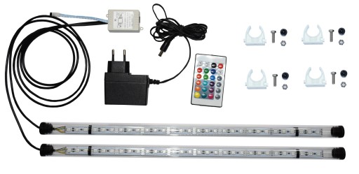 Świetlówki LED RGB w akwarium są idealne jako oświetlenie wybarwiające. Z ich pomocą można perfekcyjnie wyregulować temperaturę barwową oświetlenia w akwarium lub wspomóc wzrost roślin akwariowych. Zaleca się wspomaganie ich dodatkowym oświetleniem o barwie białej. Pracują również idealnie jako oświetlenie nocne gdy ustawimy minimalną jasność świecenia za pomocą załączonego pilota.