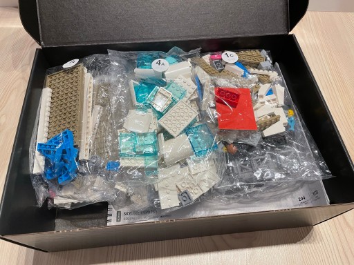 Zestaw jest nowy i nieużywany, lecz otwarty (plomba naruszona, podobno podczas odprawy celnej). Ponieważ woreczki foliowe w tym zestawie są delikatne, a niektóre źle zgrzane, to kilka z nich uległo uszkodzeniu (stąd dwa z nich są w dodatkowych woreczkach strunowych). Niczego nie brakuje - sprawdziłem zawartość zgodnie z instrukcją i wykazem. Pudełko w oryginalnym kartonie transportowym BrickLink'a.