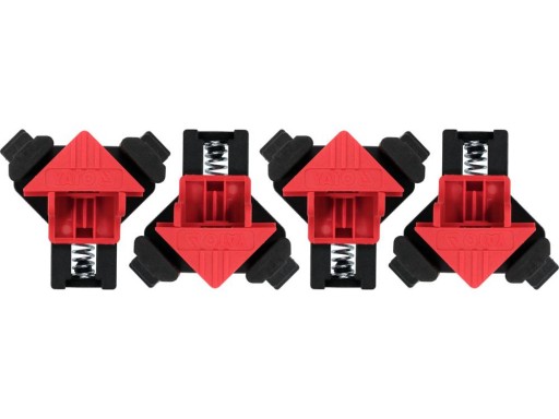 - Zestaw czterech silnych , sprężynowych ścisków kątowych, przeznaczonych do zaciskania łączonych elementów pod kątem 90 stopni.