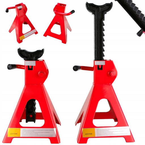 Podstawki zapewniają bezpieczne i stabilne podparcie auta na specjalnie wyprofilowanych siodełkach. Dźwignia blokująca skutecznie zabezpiecza kolumny podpór w wybranym położeniu. Wykonane są z wytrzymałej stali i charakteryzują się solidną, spawaną konstrukcją. Nogi podstawek posiadają przyspawane, szerokie stopki, stabilizujące kobyłki w trakcie pracy pod obciążeniem.