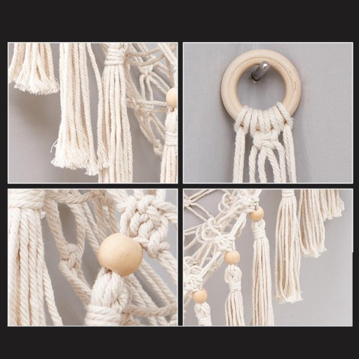 PRAKTYCZNY I BOHO DEKORACYJNY: z naturalnymi drewnianymi koralikami i pierścieniami, frędzlami dodają niewykorzystanych kątów pokoju, frędzel, makrama pluszowa siatka hamakowa z chwostem jako dekoracja.
