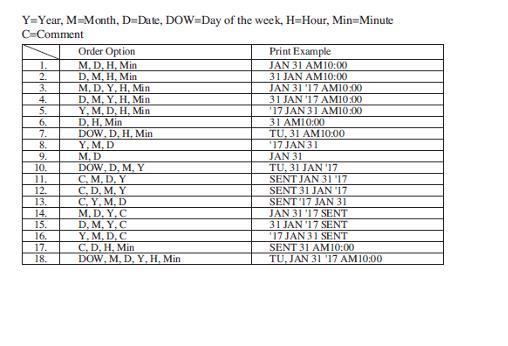 - wybór z 18 różnych standardowych formatów wydruku (różne połączenia daty, czasu, tekstu)