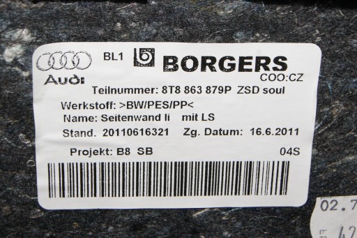 ОБИВКА БАГАЖНИКА GD AUDI A5 SPORTBACK 8T