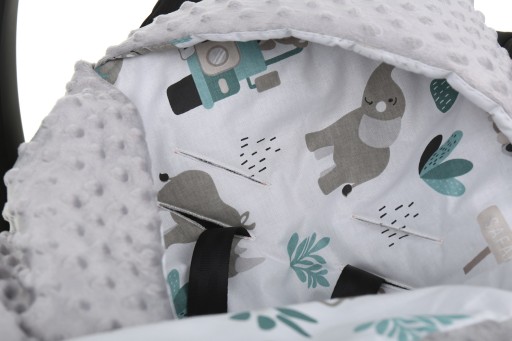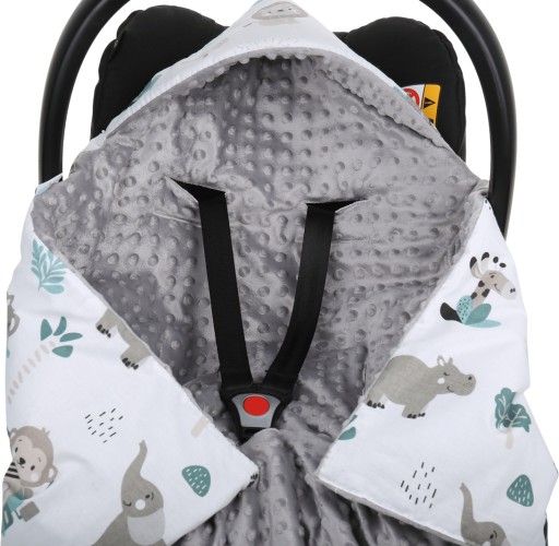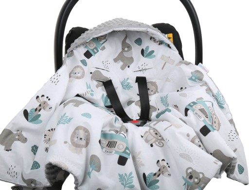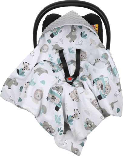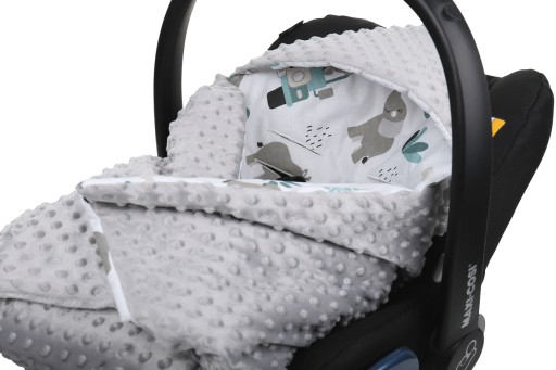 Dwustronny kocyk PREMIUM z kapturkiem i ociepleniem - idealny do każdego fotelika, nosidełka, na spacer lub w podróż.