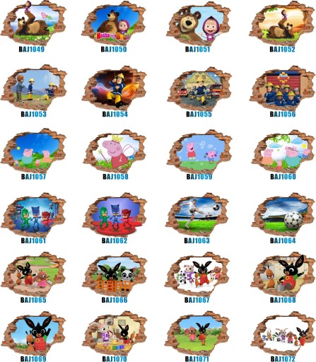 Kubuś Puchatek i Przyjaciele, Spider-Man, Myszka Miki, Mała Syrenka Ariel, Minionki, Madagaskar, Roszpunka, Epoka Lodowcowa, Smerfy, Psi Patrol, Masza i Niedźwiedź, Strażak Sam, Świnka Peppa, PJ Masks, Króliczek Bing: