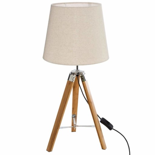 LAMPA STOŁOWA BAMBUSOWA + BEŻOWY KLOSZ boho 58 cm