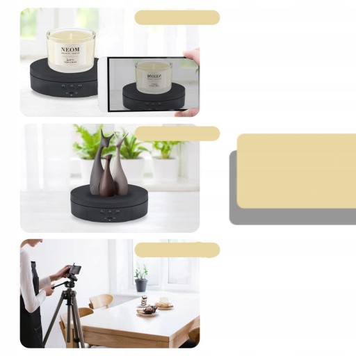 - Ten elektryczny obrotowy stojak na wyświetlacze działa cicho i nie wpłynie na kręcenie wideo.