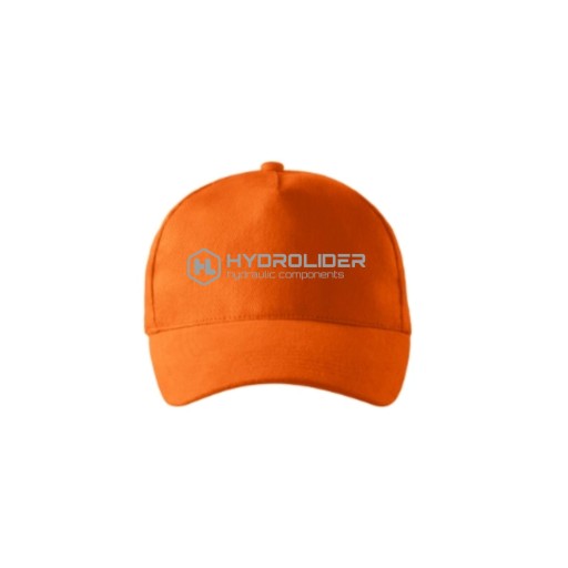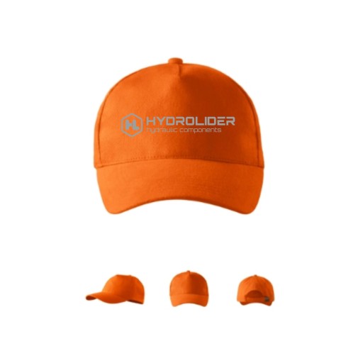 Czapka z daszkiem uniseks pomarańczowa z logiem hydrolider. Haftowane wywietrzniki, regulacja za pomocą metalowej klamry.