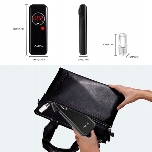 Łatwy do przenoszenia: alkomat jest mały i zajmuje mało miejsca, jest również wyposażony w 12 ustników, które można czyścić i wymieniać w dowolnym momencie. Dodatkowo posiada również przenośną torbę, która idealnie pomieści alkomat i ustniki. Jest bardzo wygodny do noszenia w torbie lub plecaku.