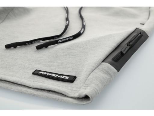 Szorty posiadają dwie praktyczne kieszonki z czarnym zamkiem błyskawicznym z czarnym suwakiem typu camlock i naszywką z logo AMG na lewej nogawce. Dzięki modnym detalom naprawdę przyciągają wzrok.