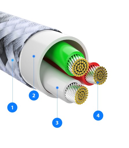 W przewodzie marki ESSAGER® zastosowano bardzo wytrzymały nylonowy oplot co znacznie wydłuży jego żywotność.