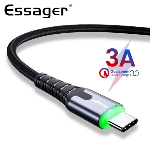 ESSAGER 3A TYPE-C USB-C QC 3.0 USB-кабель 1 м со светодиодом
