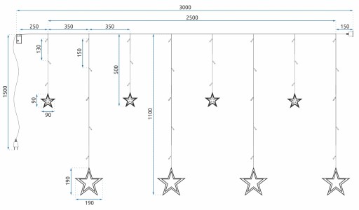 - Długość części zwisającej dużej gwiazdki: 110 cm