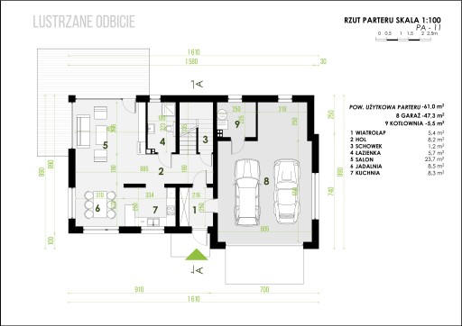 Projekt oryginalny autorski biura projektowego Pióro Architekci-11 wersja Lustrzane odbicie.