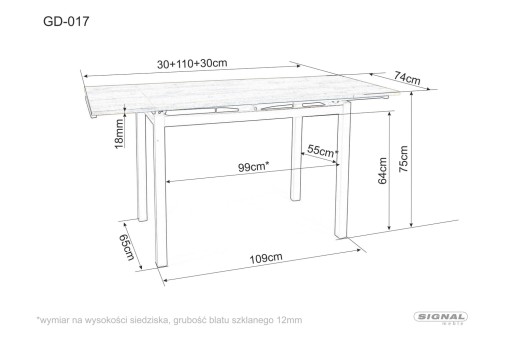 Stół GD-017 od Signal Meble jest propozycją dla osób ceniących prosty i estetyczny styl nowoczesny. Blat stołu stanowi prostokątne szkło o wyokrąglonych rogach. Stół posiada rozkładany blat, który zdobi ciekawy wzór graficzny. Podstawę stanowi zaś metalowy mocny stelaż. Prosta i solidna konstrukcja zapewni użytkowanie na długie lata, a klasyczny wygląd nie wyjdzie z mody mimo upływu czasu.