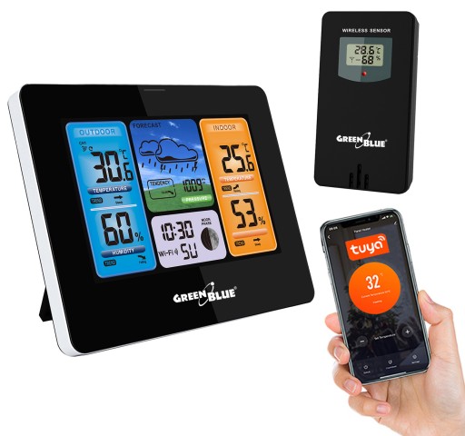 STACJA POGODY POGODOWA BEZPRZEWODOWA Z WI-FI TUYA ZASILACZ GREENBLUE GB215