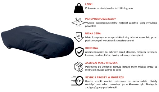 Powłoka pokrowca całkowicie bezpieczna dla lakieru i karoserii.