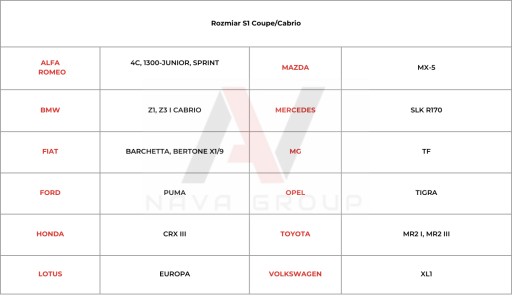 Rozmiar pokrowca: S1 coupe/cabrio
