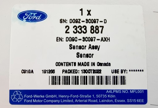 NUMER PRODUCENTA: DG9C-3C097-AXH