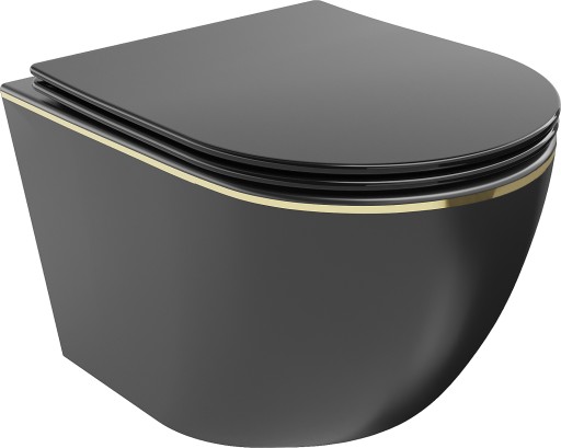 Mexen Lena miska wc Rimless z deską wolnoopadającą slim duroplast, czarny/złoty linia