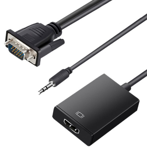 Konwerter to produkt, który pozwoli ci na niesamowitą jakość wyświetlanego obrazu z VGA na HDMI. Posiada on również złącze Jack 3,5 mm, które odpowiedzialne jest za dźwięk na podłączeniu HDMI. Przejściówka umożliwi ci podłączenie urządzenia posiadającego wejście VGA z innym urządzeniem posiadającym wejście HDMI. Konwerter połączy obraz oraz dźwięk do wyjścia HDMI. Zasilane jest za pomocą kabla micro USB i jest jednokierunkowy (działa tylko i wyłącznie w jedną stronę).