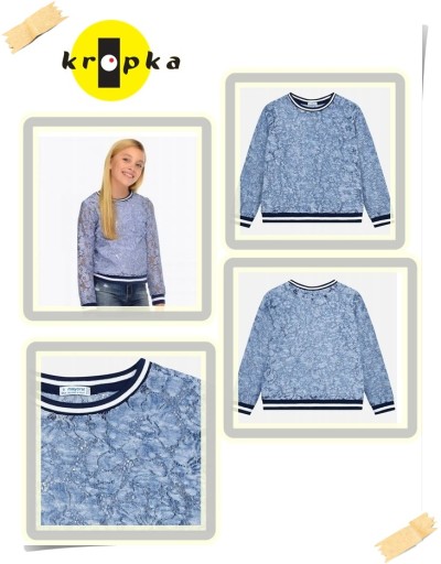NIEBIESKA KORONKOWA BLUZA wykończona fajnymi ściągaczami . Bluza jest delikatnie prześwitująca bez podszewki.