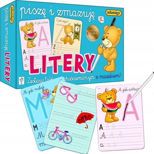 Piszę i Zmazuję Litery Cyferki Nauka Pisania i Liczenia 5+ Adamigo