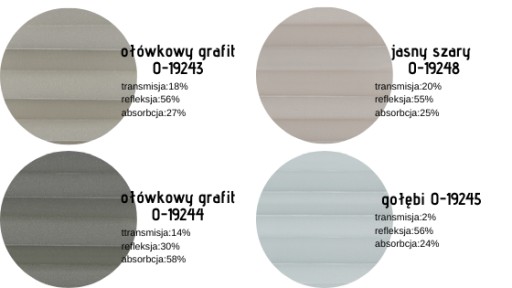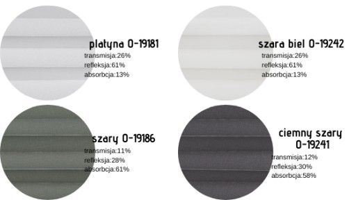 - T - transmisja to procent światła przechodzącego przez tkaninę