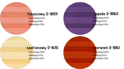 - Wysokiej jakości tkaniny, o bardzo dobrych parametrach izolacji przeciwsłonecznej
