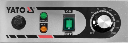 Dwie grzałki, każda o mocy 3,3kW, sterowana jest za pomocą potencjometru umieszczonego na panelu sterującym. Możliwe jest ustawienie temperatury pracy w zakresie 60~200℃. Zainstalowane bryzgoszczelne wyłączniki pozwalają na wyłączenie urządzenia, bez konieczności odłączania kabla zasilającego z sieci. Dodatkowo panel sterujący posiada osłonę zabezpieczającą wykonaną z bardzo wytrzymałego poliwęglanu, która chroni panel przed zachlapaniem olejem podczas smażenia. Dzięki temu utrzymanie frytownicy w czystości jest znacznie ułatwione. Wyjmowane grzałki mają możliwość powieszenia ich na specjalnych uchwytach w pozycji, w której ściekający olej trafia z powrtotem do zbiornika. Frytownica posiada dodatkowe zbezpieczenie, które automatycznie wyłącza grzałkę w momencie wyciągnięcia jej ze zbiornika. Dodatkowe zabezpieczenie chroni ją przed przegrzaniem, przy temperaturze powyżej 260℃.