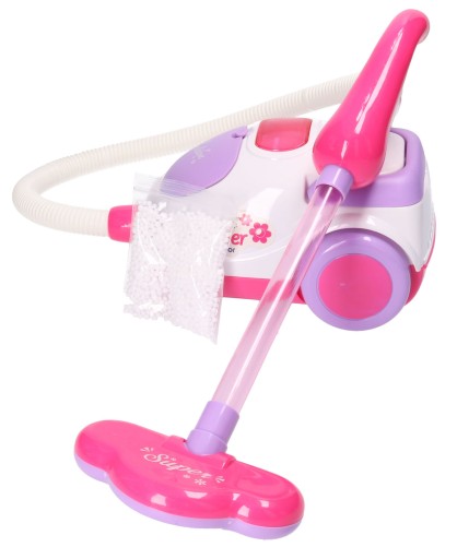 Działa jak prawdziwy: buczy oraz wciąga "śmieci" w postaci styropianowych kuleczek dołączonych do odkurzacza.