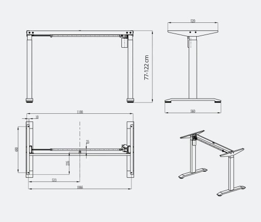 W Spacetronik Ergoline stawiamy na detale. Odpowiednio zaprojektowany stelaż zapewnia stabilność biurka nawet na jego najwyższej wysokości. Grubsza i trwalsza powłoka proszkowana jest odporna na zarysowania, wodę i plamy. Regulowane biurko posiada blat o rozmiarach 118 cm x 60 cm x 2 cm. Maksymalna nośność biurka wynosi 80 kg. Zainstalowana w blacie przelotka kablowa pozwola zachować ład i porządek wśród przewodów na biurku.