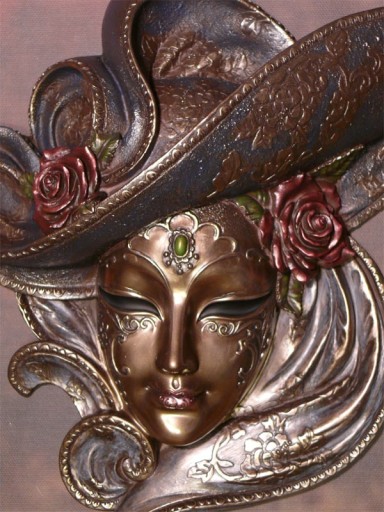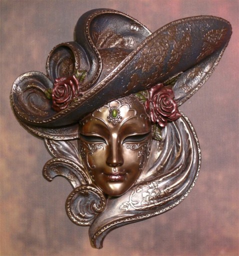 Maska jest pokryta brązem i ręcznie malowana.