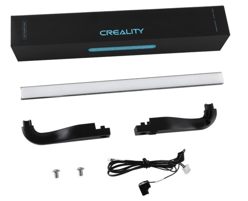 Zestaw LED do drukarek 3D Creality: Ender-3 S1 oraz Ender-3 S1 Pro. Umożliwia oświetlenie pola roboczego. Uatrakcyjnia również wygląd samego urządzenia. Pasek LED posiada ulepszony układ sterujący, zapewnia delikatne, nie rażące w oczy i nie powodujące efektu stroboskopowego światło. Produkt jest łatwy w instalacji, umieszcza się go na górnej części ramy drukarki.
