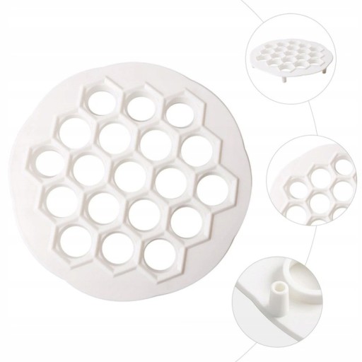 Wykrojnik do szybkiego wyrabiania pierogów, pyzów, uszek wyprodukowany z wysokiej jakości tworzywa sztucznego, które jest mocne i łatwe w utrzymaniu czystości.