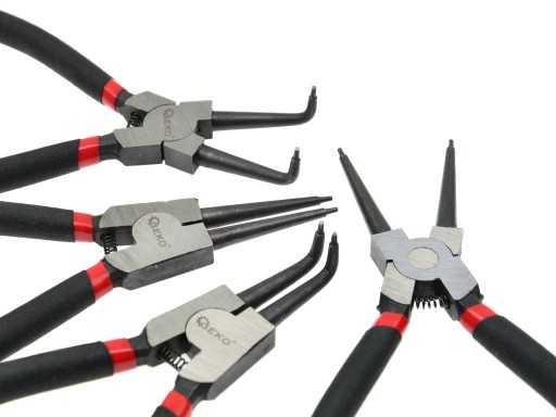 Zestaw szczypiec umożliwia montaż i demontaż wewnętrznych (rozprężne w środku tulei) oraz zewnętrznych (zaciskowe na zewnątrz wałka) pierścieni segera. W skład zestawu wchodzą 4 rodzaje szczypiec.