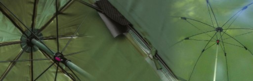 Parasole wędkarskie wykonane z materiału 210D, o wodoodporności 3000 mm H2O. W ofercie znajdują się parasole z osłoną i bez, istnieje możliwość doposażenia parasoli w dodatkowe akcesoria.
