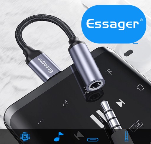⭐ ADAPTER AUDIO m.in. do słuchawek przejściówka USB TYP-C na Mini Jack marki ESSAGER ⭐
