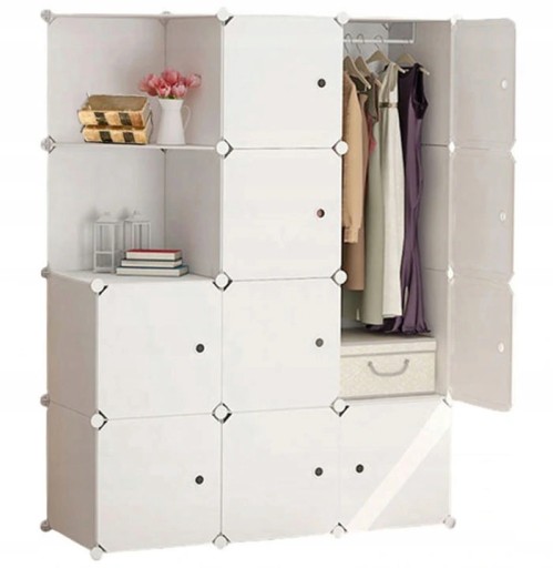 SZAFA GARDEROBA UBRANIOWA BIAŁA 12 PÓŁEK MODUŁOWA❗