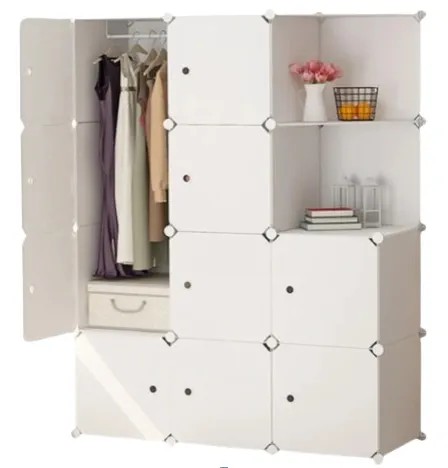 БЕЛЫЙ ШКАФ ДЛЯ ОДЕЖДЫ С 12 МОДУЛЬНЫМИ ПОЛКАМИ