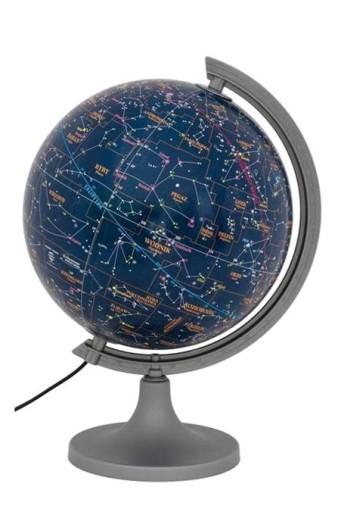 Na globusie uwidoczniono gwiazdozbiory. Zaznaczono klasyfikację widmową gwiazd, ich typy, wielkość, znaki zodiaku i inne niż gwiazdy obiekty astronomiczne (skupiska gwiazd, galaktyki, mgławice itp.