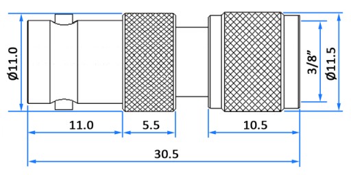 Oferowany adapter wykonany jest niklowanego mosiądzu i posiada złocone styki. Impedancja adaptera wynosi 50Ω. Wymiarowanie adaptera prezentujemy poniżej: