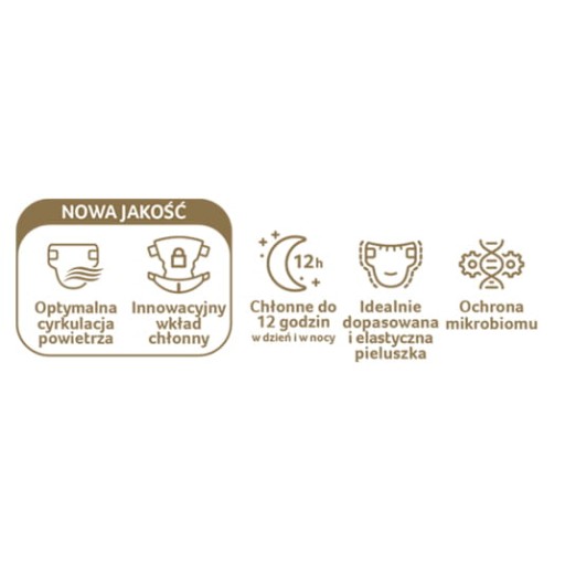 Pieluszki wyprodukowane są bez użycia chloru cząsteczkowego ani substancji zapachowych, aby zminimalizować ryzyko wystąpienia reakcji alergicznej skóry. Nie zaburzają równowagi mikrobiologicznej skóry oraz wspierają naturalną mikroflorę skóry niemowląt. Mięciutka powłoczka jest przyjazna dla nawet najbardziej delikatnej skóry.
