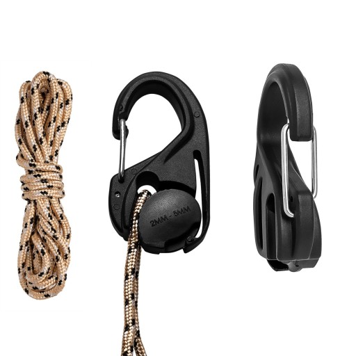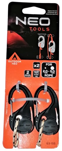 Zestaw dwóch napinaczy linek od marki NEO, oferowanych w zestawie z linką paracord 3,5 mm x 2,4 m. To uniwersalne narzędzia, przydatne w wielu różnych sytuacjach. Dedykowane są linkom o przekroju od 2 do 5 mm. Napinacze wykonane z nylonu (korpus) oraz ze stali (klamra), umożliwiają mocowanie oraz zaczepianie linek, bez potrzeby znajomości węzłów. Solidna, ale lekka konstrukcja elementu pozwala na wygodne użytkowanie przez wiele sezonów.