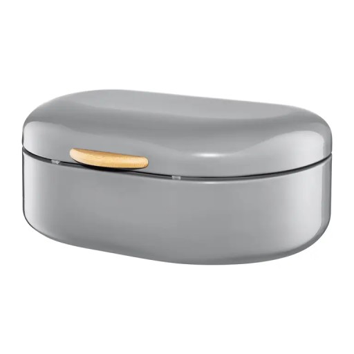 Chlebak z kolekcji Olivier jest nie tylko funkcjonalny, ale również bardzo dekoracyjny. Posiada ciekawy opływowy kształt, który efektownie prezentuje się w kuchni. Jego duża pojemność umożliwia przechowywanie różnych rodzajów pieczywa. Obudowa jest wykonana ze stali nierdzewnej, co zapewnia trwałość produktu. Drewniana bambusowa rączka ułatwia wygodne otwierania i zamykanie pokrywy. Antypoślizgowe nóżki zapobiegają przesuwaniu się chlebaka po blacie. Przechowywanie pieczywa w chlebaku pozwala zachować jego świeżość na dłużej. Dostępny w 3 kolorach: białym, szarym oraz czarnym. DANE TECHNICZNE Marka Ambition Długość [cm] 35 Szerokość [cm] 24 Wysokość [cm] 14.5 Waga [kg] 1.1 Materiał Bambus, Stal Kolor szary Wzór gładki Ean 5904134689467