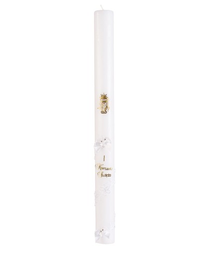 Niezapomniana pamiątka z okazji I Komunii Świętej. Nasze świece są zdobione z najwyższej jakości dodatków, produkt wysokiej klasy wosku, nie kopcąca, Polskiego producenta. Całość wygląda elegancko i gustownie.