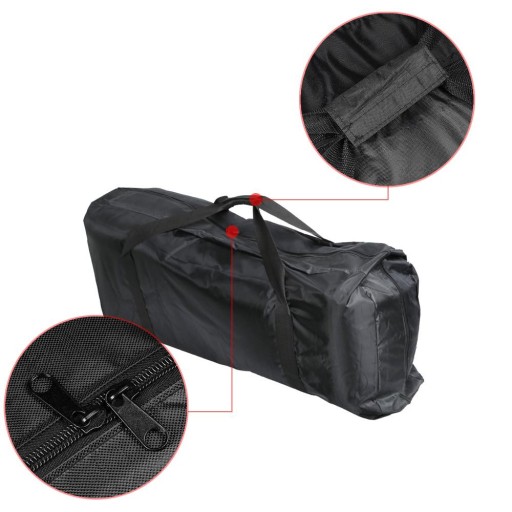 Torba świetnie sprawdzi się jako schowek na zabezpieczenie hulajnogi w transporcie. Torba zapinana jest na zamek błyskawiczny i posiada szelki transportowe, które możemy zaczepić do kierownicy i kolumny kierowniczej.