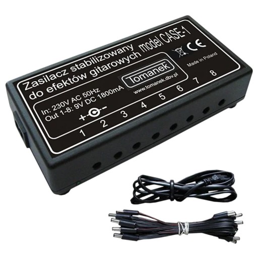 Tomanek Case-1 wyposażono w wysokiej jakości zasilacz transformatorowy cechujący się doskonałą stabilizacją napięcia, dzięki czemu podłączone efekty zasila idealny prąd o napięciu 9V.