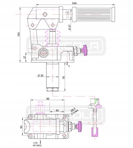 - Zakres regulacji zaworu przelewowego: 30 – 380 bar